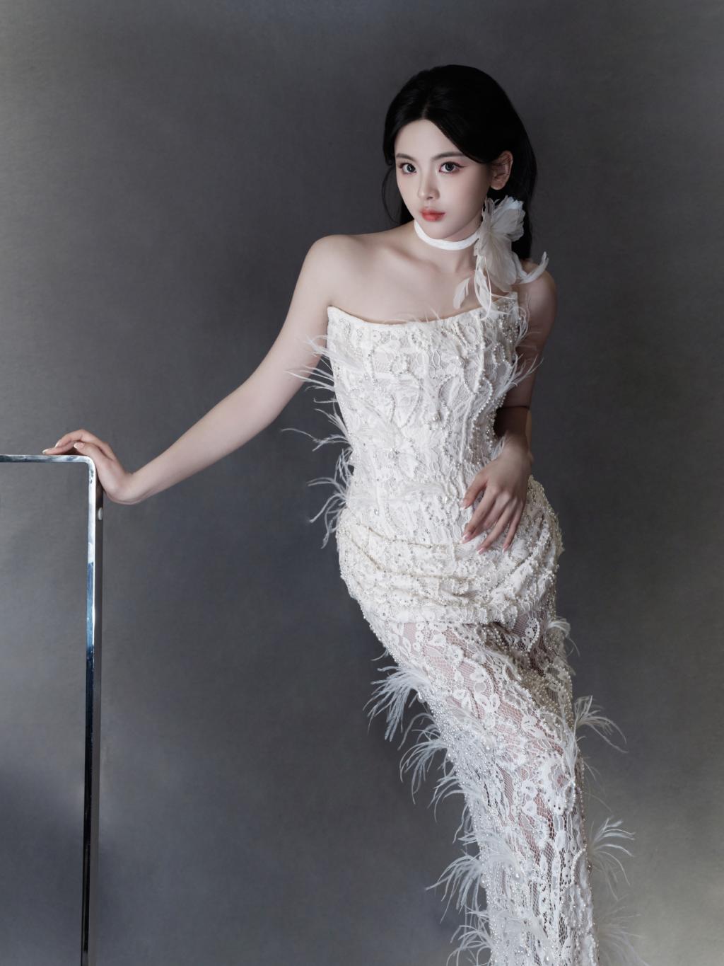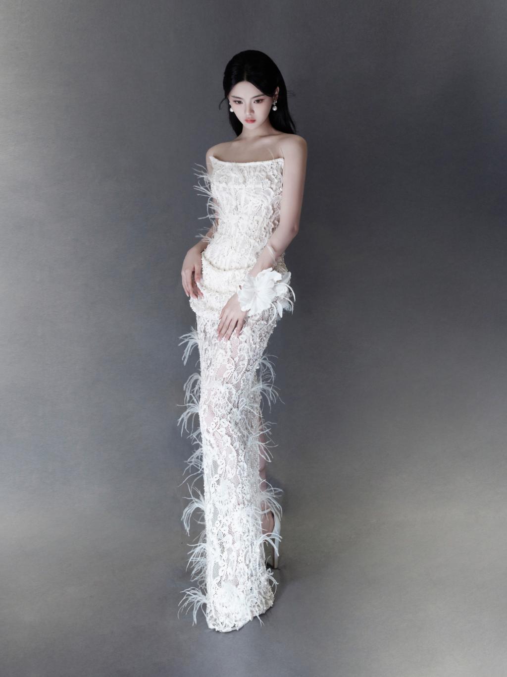 近日,杨超越工作室晒出一组活动造型图。杨超越穿钉珠蕾丝礼服裙,身材纤细,肩颈线条优越,诠释了东方洛可可浪漫风格,优雅迷人!
