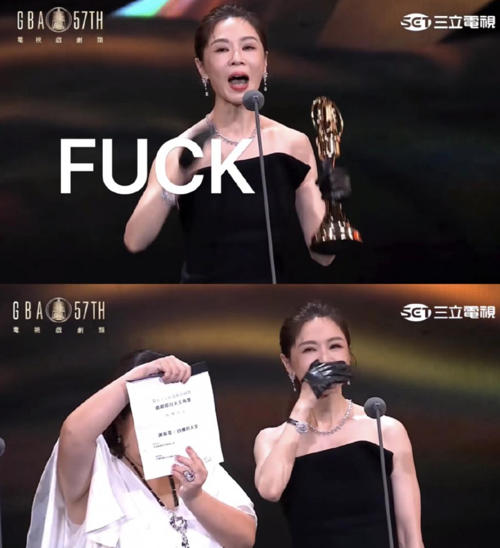 之前她凭借另一部片拿到金钟奖最佳女主角,上台领奖时她乌龙了,竟感谢完一遍《俗女养成记》,发现搞错之后一句 fck 脱口而出,成就了颁奖礼上最俗女又最华彩的瞬间。