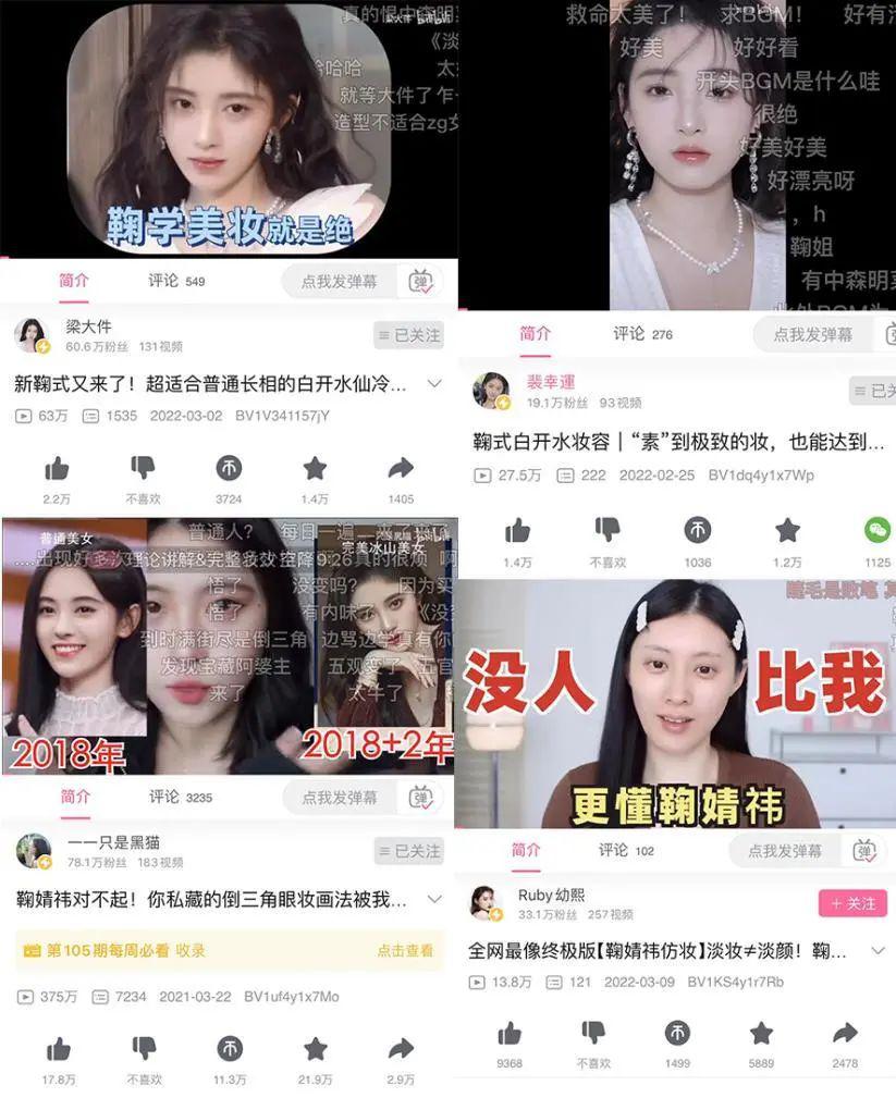 由于她出道十年来堪称换头般的妆造进阶程度,如今在 B 站、小红书平台的美妆区里,关于她的仿妆教程几乎形成了一门「鞠学」。