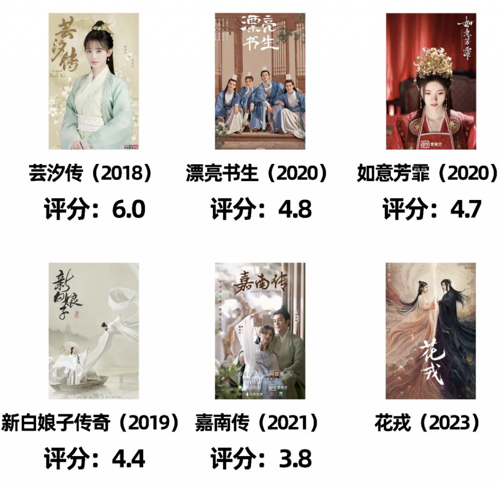 以上是鞠婧祎近年来主演古偶的配置及豆瓣评分,均分甚至未超过 5。