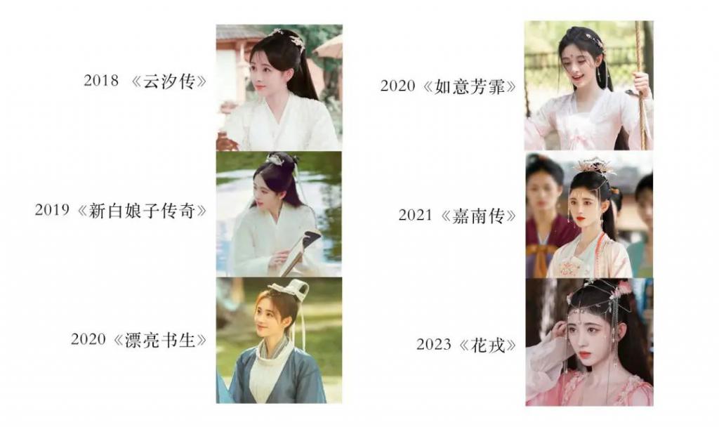 2016 年开始,她遵循爱豆的「艺而优则剧」法则,转型涉足网剧——先是在《九州 · 天空城》、《热血长安》、《轩辕剑之汉之云》等剧中做配角,2018 年的小成本《云汐传》令她首次以网剧女主的身份展露头角。幸而赶上了内娱古偶网剧市场的一时兴起,几年来她接连产出了许多作品。
