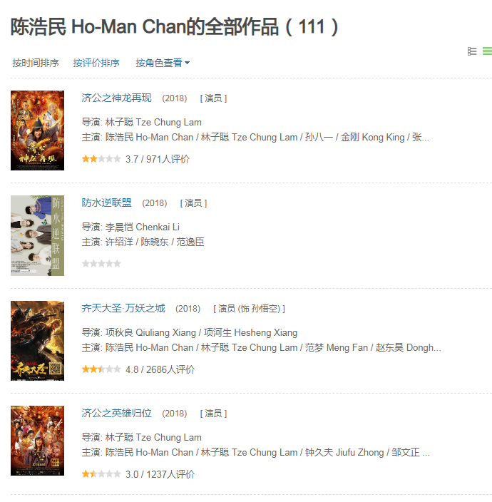 但是他拍得多达二十几部的网络电影很多都是烂片,有的甚至没有评分。