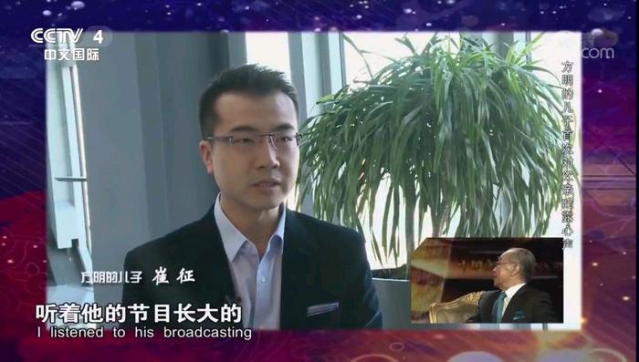 父子感情深厚,连性格也出奇地相似,都是在话筒前谈笑风生,生活中却跟大多数中国父子一样彼此特别不善表达。节目组采访了儿子崔征,崔征通过镜头第一次跟父亲方明吐露心声。崔征说他也是小时候听父亲广播长大的,同事们说他跟他父亲越来越像,父亲是他无法超越的经典。虽然没有受过指点,但崔征能有今天,特别感谢父亲潜移默化的影响。