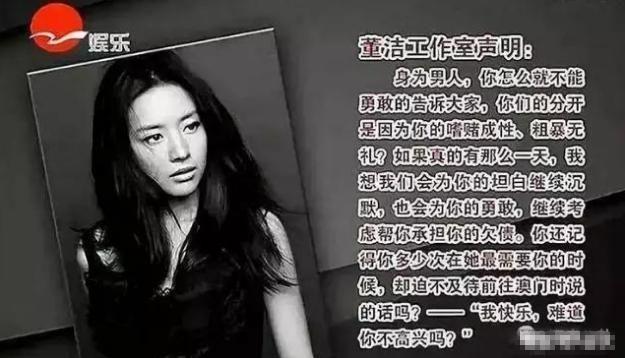 但好景不长,两人分开时也闹得非常不愉快,董洁指责潘粤明嗜赌,家暴,还让女方替其还债,众当时网友选择站在了董洁这一边,指责潘粤明不是男人,让潘粤明滚出娱乐圈。