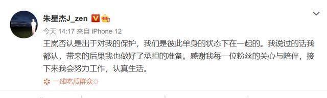 但是让人没有想到的事情发生了,王岚又发表了一则微博,并且表示“男友另有其人”,有些网友表示非常惊讶,朱星杰承认了两人的恋情,王岚却反对,而且表示男朋友是其他人,那么又把朱星杰放在什么样的位置呢?还是王岚劈腿?这简直让人不能理解,有些网友也表示“商量好了再说”。