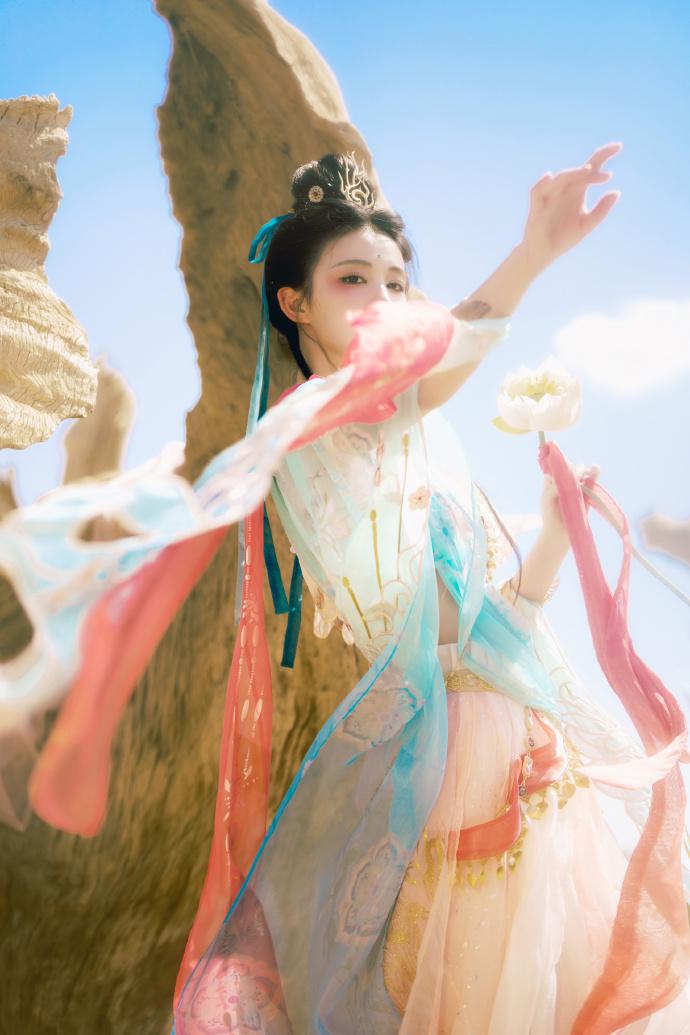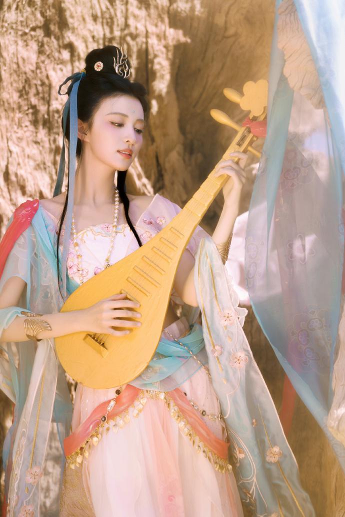 近日,王楚然工作室发布一组王楚然敦煌神女写真图。图中王楚然手抱琵琶,衣裙随风飞舞,美若天仙。