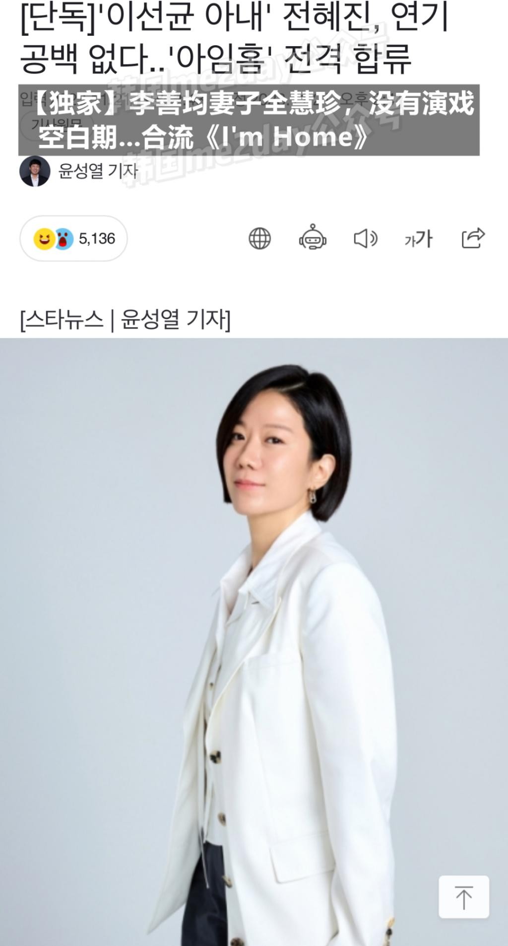 众所周知全慧珍的丈夫李善均最近卷入了 " 毒品丑闻 ",虽然不少人担心因为丈夫的丑闻她的演员事业也会受到影响,但全慧珍仍然成功选角了下一部作品。