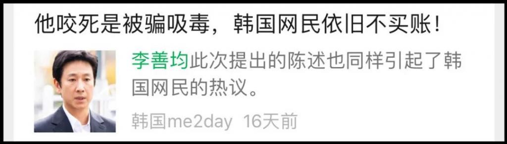在这期间,其实大家更惋惜的是李善均的妻子全慧珍,因为她同时得知了丈夫的吸毒嫌疑和进出娱乐场所的消息。据悉李善均遭到娱乐场所室长 A 某威胁向其支付的 3 亿 5 千万韩元,也是瞒着妻子向熟人借的,而这笔钱似乎就是为了平息 " 揭露他吸毒行为 " 的威胁。