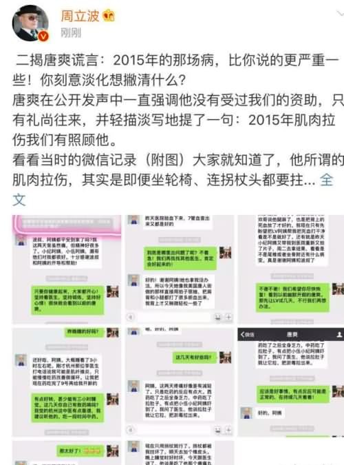 周立波还指出,唐爽轻描淡写的“2015年肌肉拉伤”实际是非常严重且难治的病症,是在他们夫妇二人的帮助和照料下才康复的。