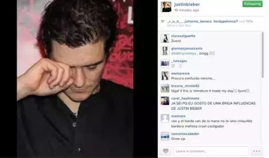 事件发生后,比伯在Instagram上发布了一张布鲁姆的照片,这位演员似乎在哭泣。你可以在下面看到有关事件的图片和评论: