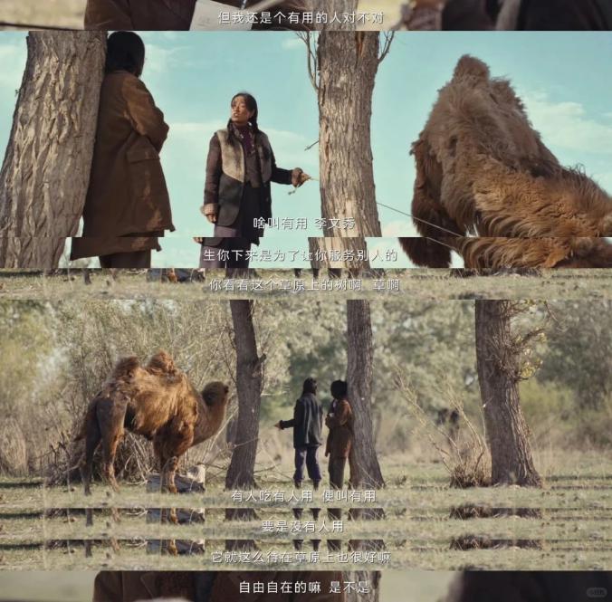 "啥叫有用李文秀,生你下来是为了服务别人的吗?你看看这个草原上的树啊草啊,有人吃有人用便叫有用,要是没有人用,它便这么待在草原上也很好嘛,自由自在的嘛。"