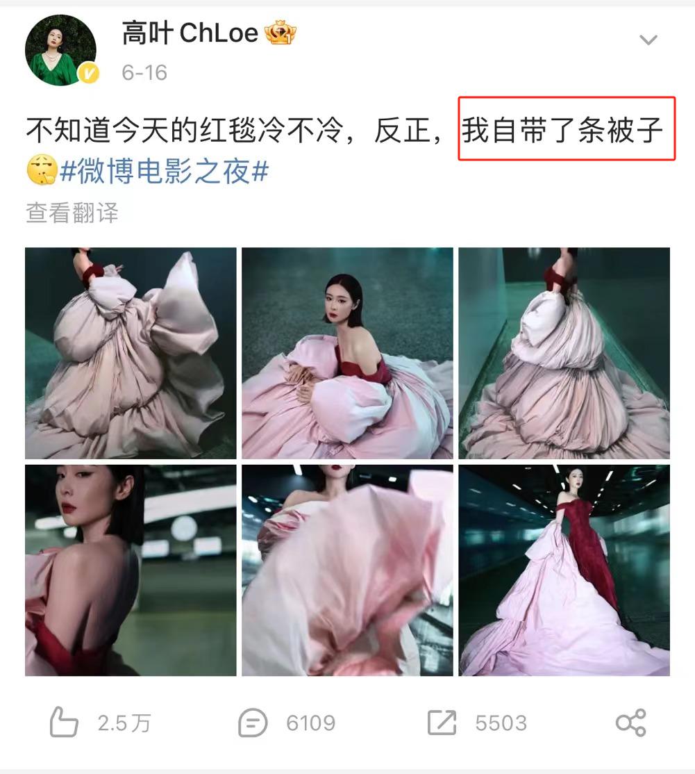 在30°C+的上海国际电影节,高叶自己带了床被子去走红毯。