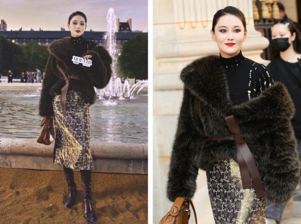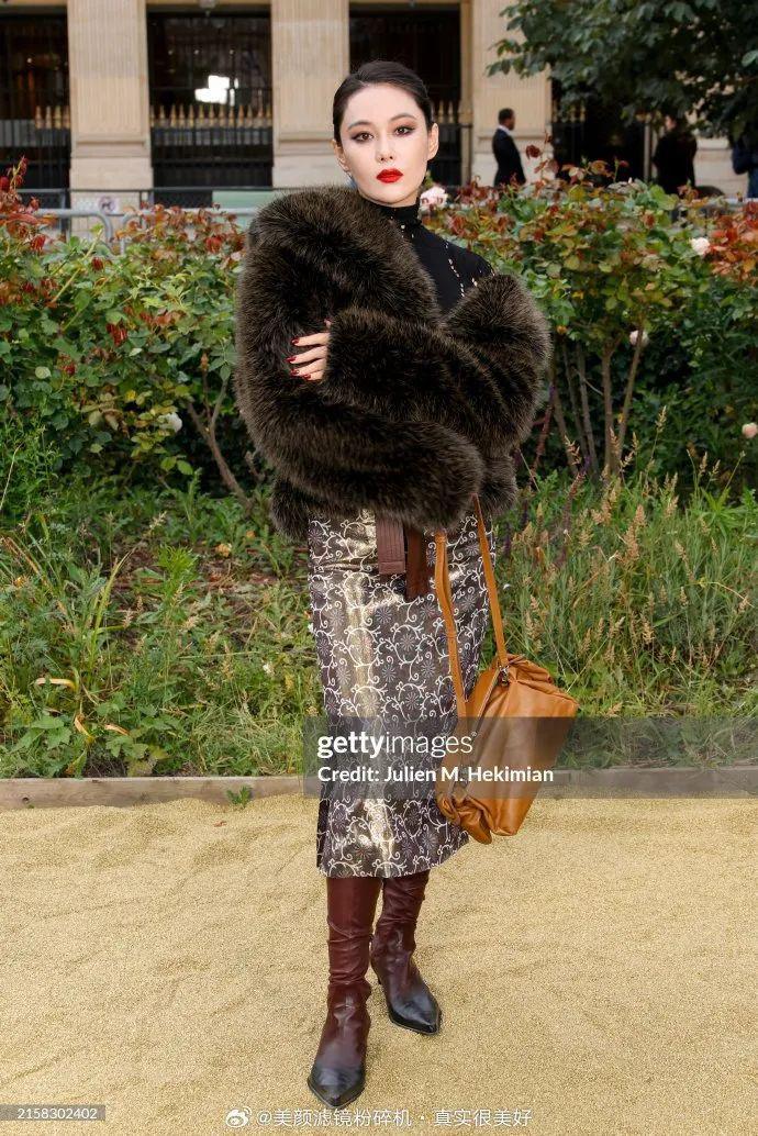 金晨参加AMI秀场这身,睡裙配长靴,看着是忽冷忽热,难怪头发都出油了。