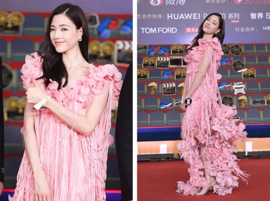 上海国际电影节这身是走成熟风情风了,但玫粉色也是真的土啊!(宝格丽也救不回来……)