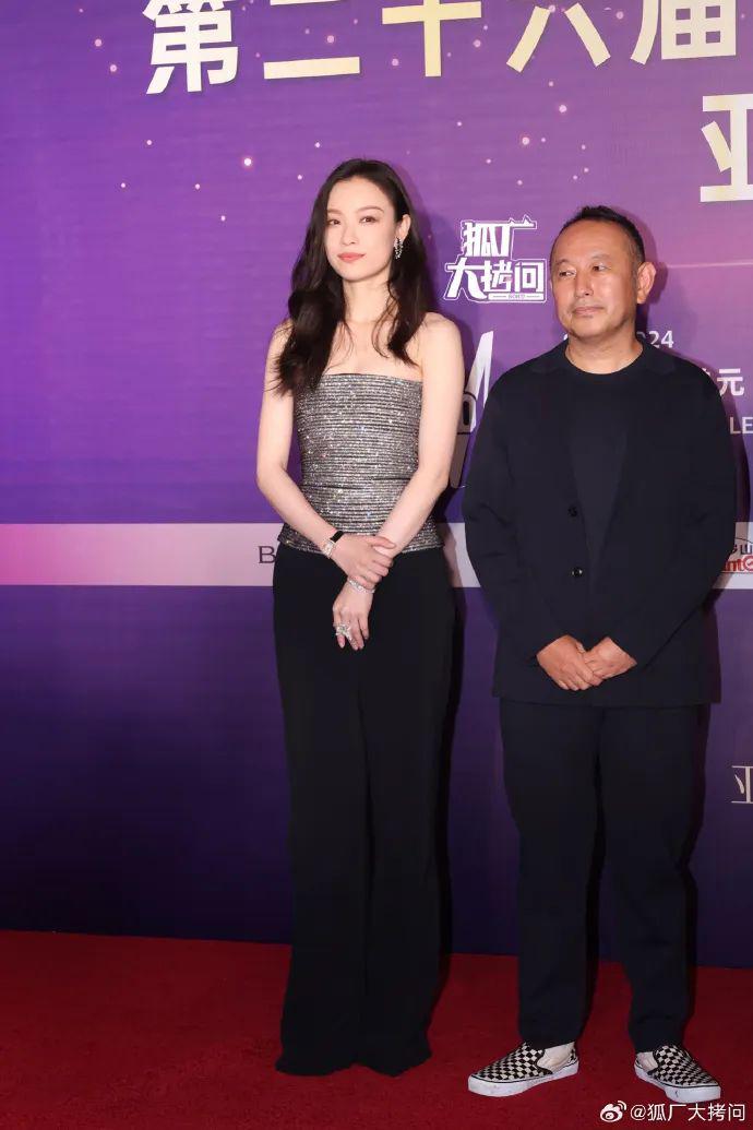 在亚洲新人奖红毯上,造型师又给姐安排了一身钢丝球上衣+阔腿裤的造型,企图走一个酷飒大女主的路线。