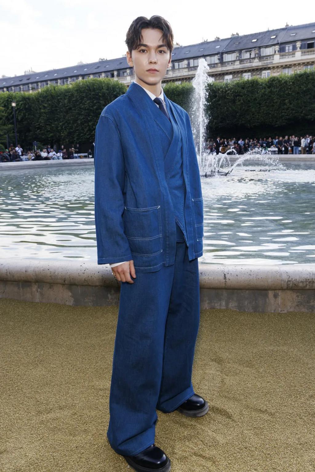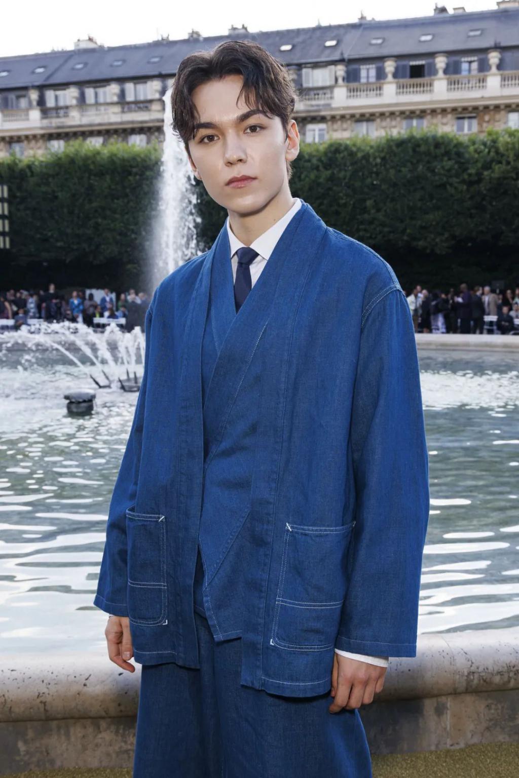 在被油头浸泡的LV秀场,王嘉尔这身算是fresh了。