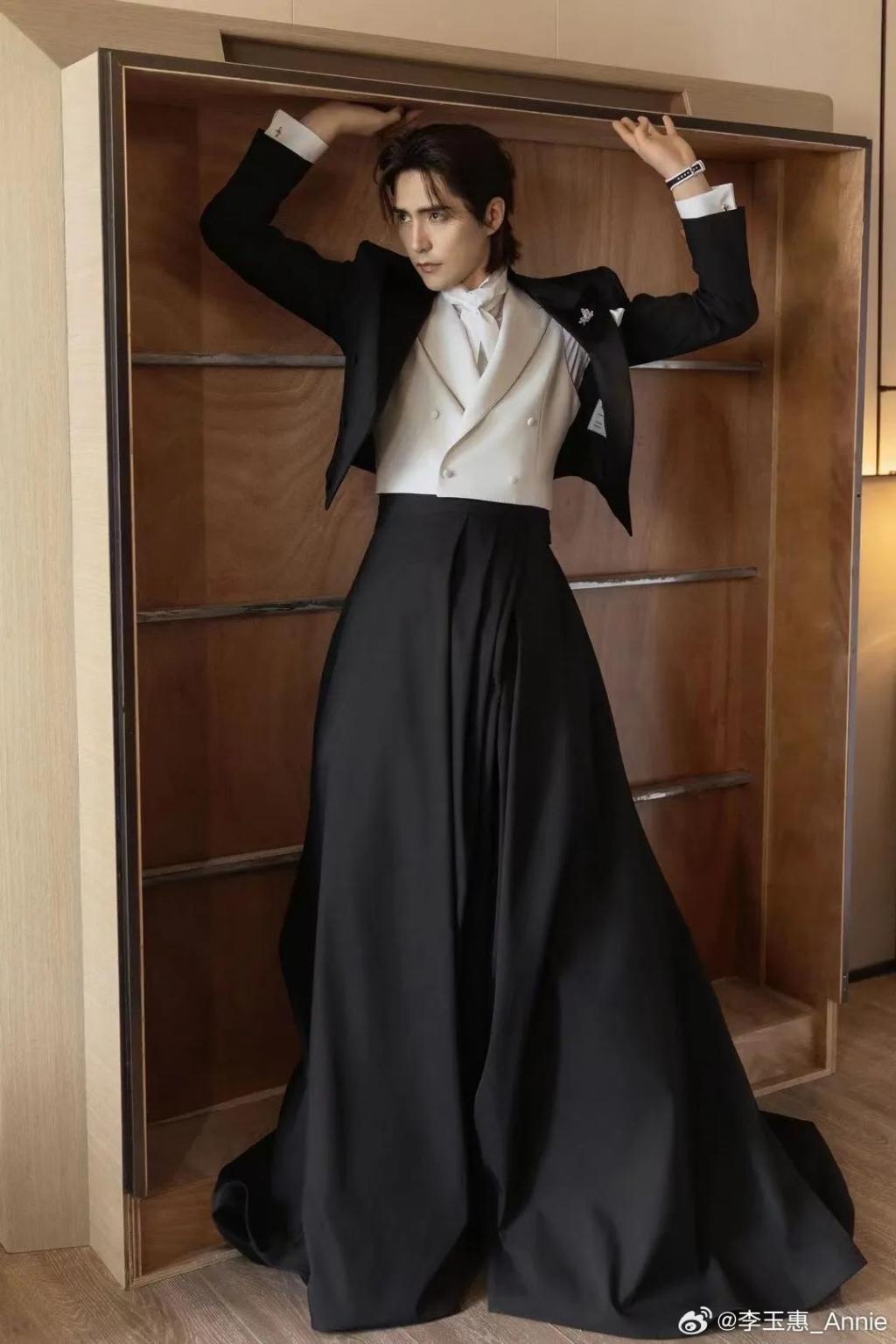 全套两身定制的裙裤,既柔又飒,还挺有歌剧feel。(是他的赛道没错。)