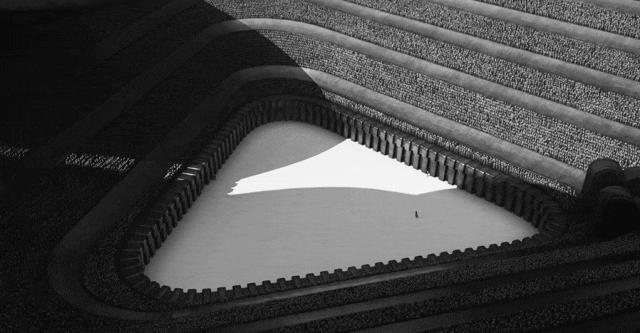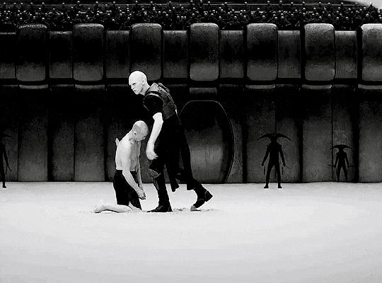 我印象最深的是他在斗兽场的猎杀戏份,画面被切换成和自然完全割裂的黑白效果,这部分剧情专门采用了红外线摄像机拍摄。
