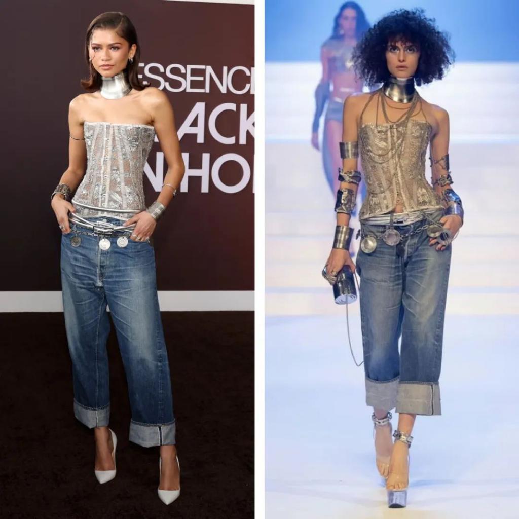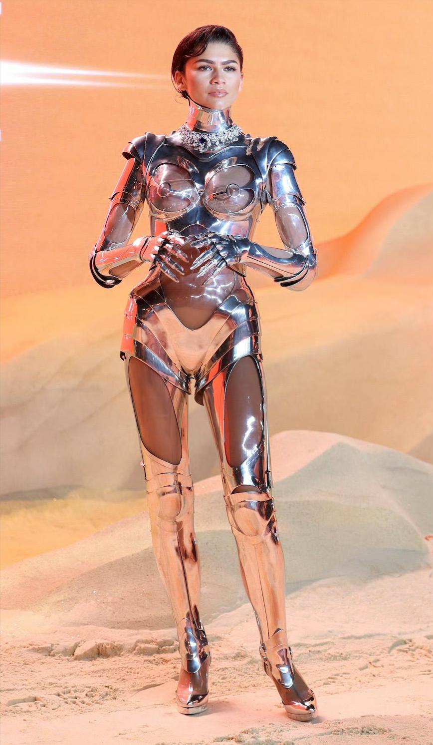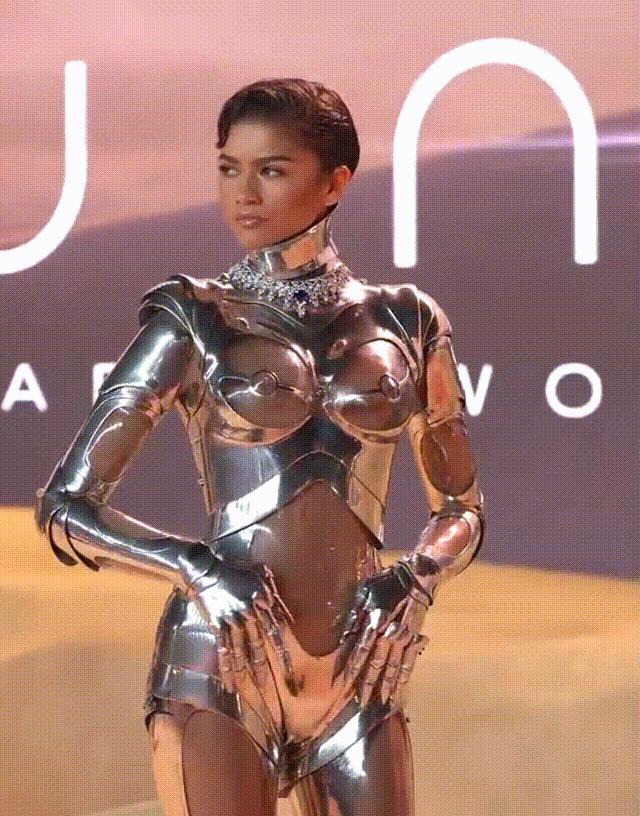 当中最惊艳的还是Zendaya伦敦首映会上身的这件将近30年前的Thierry Mugler机械姬造型。
