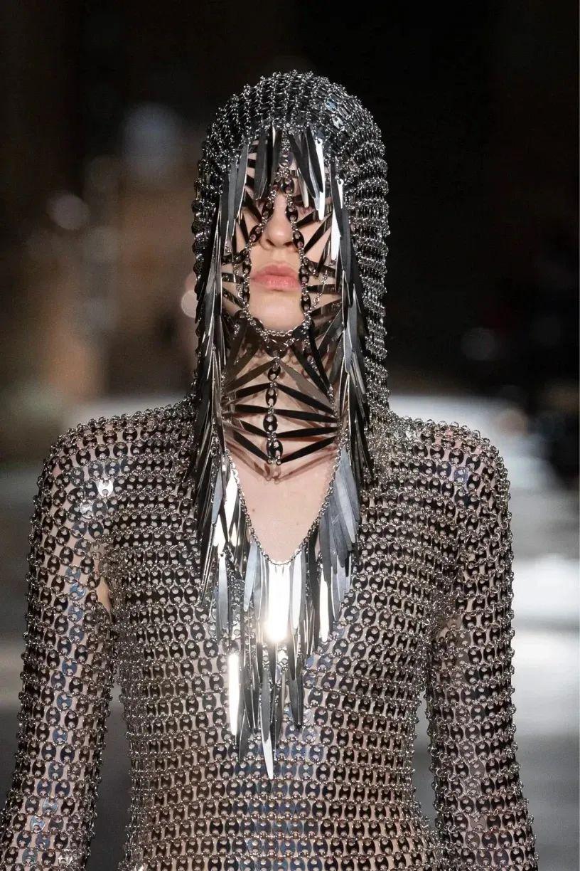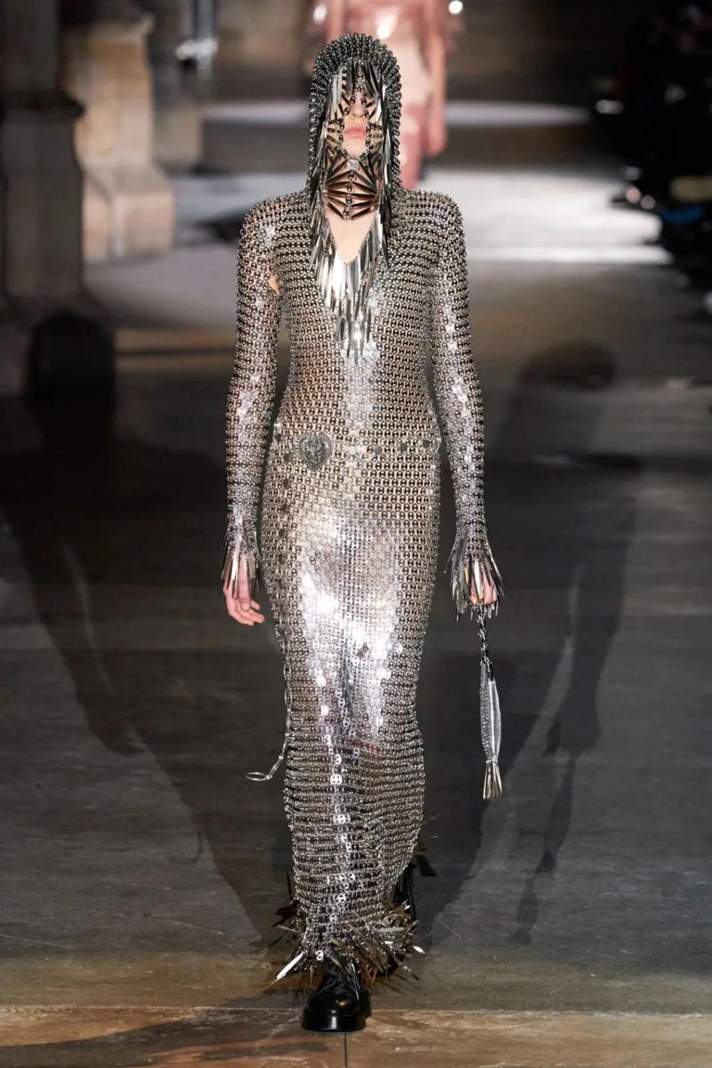 伊如兰公主的金属锁子甲连衣裙,直接复刻了复古未来主义先驱法国品牌Paco Rabanne的作品。