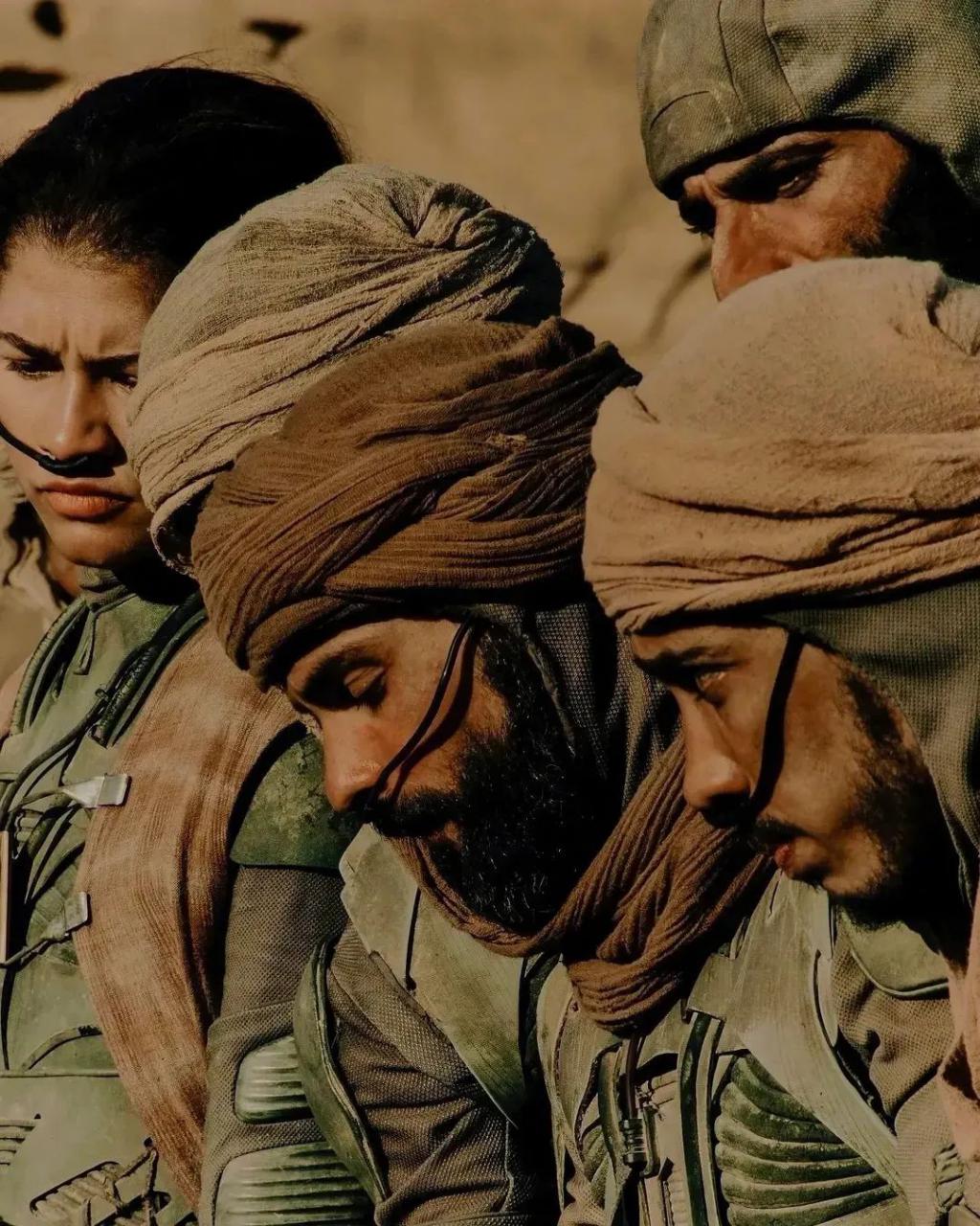 难怪大家都说看沙丘就像接受一场美学洗礼,剧中的废土机能风也成了这两年的流行趋势之一。