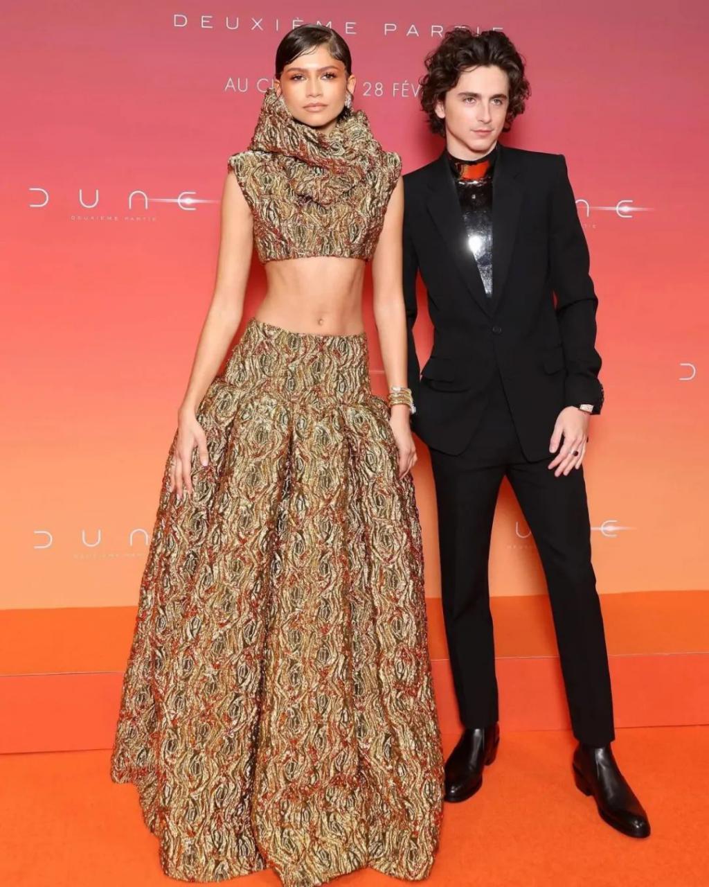 好了,不管你站哪边。我甩几张图,你就能感觉到,不仅Zendaya,整个《沙丘2》剧组都时髦得不像话。