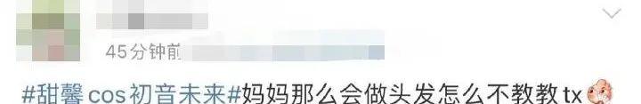 起因是,甜馨在网上分享了自己穿初音未来 cos 服的照片,并配文「不会戴假发」。
