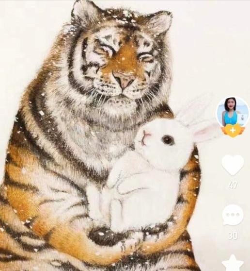 娇娇还晒出了一张老虎抱着兔子的照片,似乎也在讽刺他们。