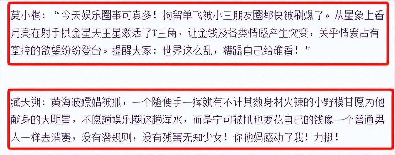 甚至前女友莫小棋也为其洗白,臧天朔更是喊出了带脏话的“力挺!”之口号……