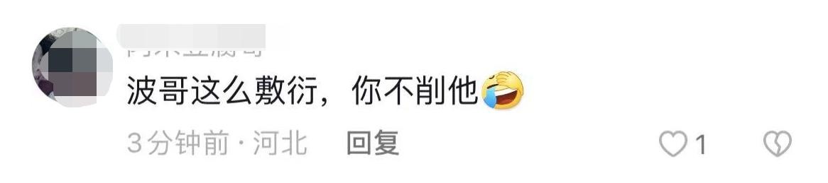 网友纷纷留言评论,发出自己的感觉:“波哥著名敷衍,你不削他……”