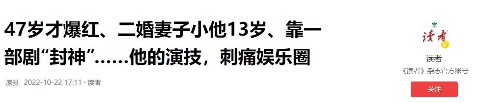 读者:47岁才爆红、二婚妻子小他13岁、靠一部剧“封神”……他的演技,刺痛娱乐圈