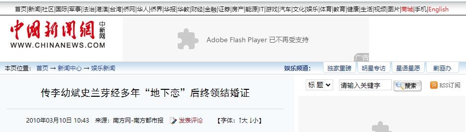 中国新闻网:传李幼斌史兰芽经多年“地下恋”后终领结婚证