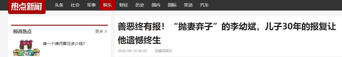中华网:善恶终有报!“抛妻弃子”的李幼斌,儿子30年的报复让他遗憾终生
