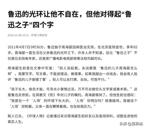 信息来源:环球人物志2016.12.6——鲁迅的光环让他不自在,但他对得起“鲁迅之子”四个字