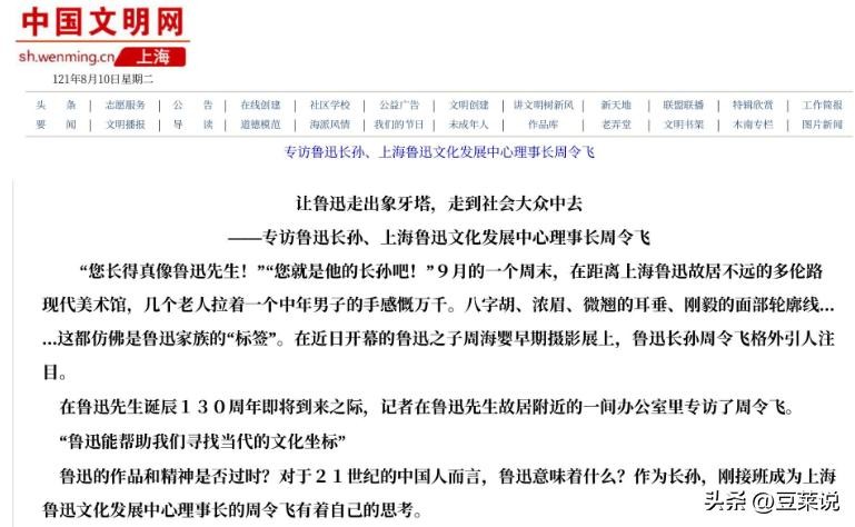 信息来源:中国文明网2021.8.10——专访鲁迅长孙、上海鲁迅文化发展中心理事长周令飞