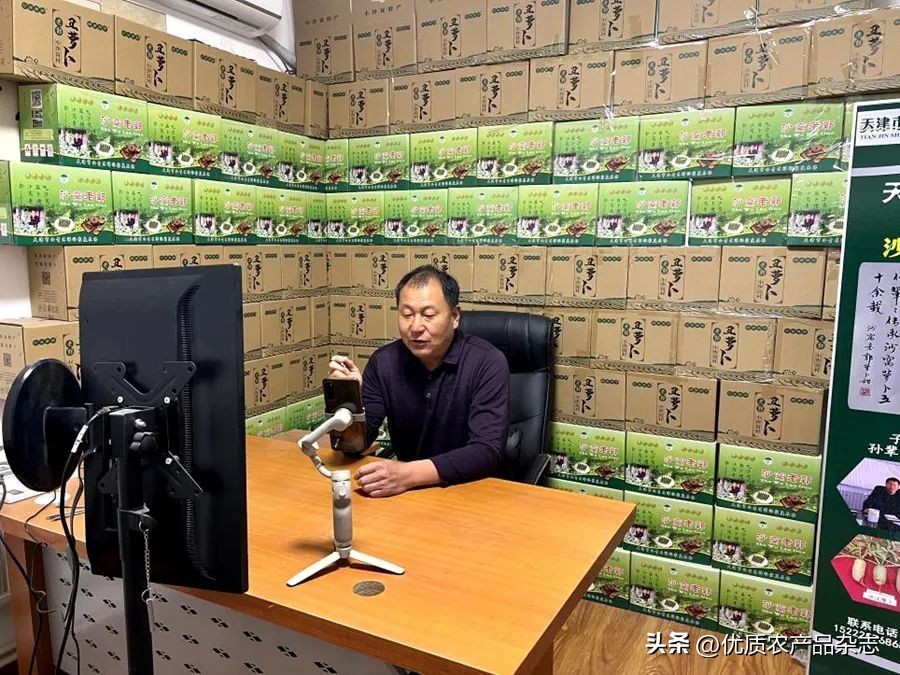 “各位家人好!欢迎来到直播间,今天直播间优惠多多,大家抓紧下单啊!”虽然主播们操着一口纯正西青口音,也没有网红主播的靓丽外表,但就是借着这种淳朴的风格在直播间给全国各地消费者捎去网红萝卜——沙窝萝卜。这其中就有位叫“沙窝老郭”的主播通过不懈的努力和学习,由种植户逐步走向了直播带货的“网红”。从开设网店、注册抖音账号、拍摄短视频,直到开始尝试直播带货……
