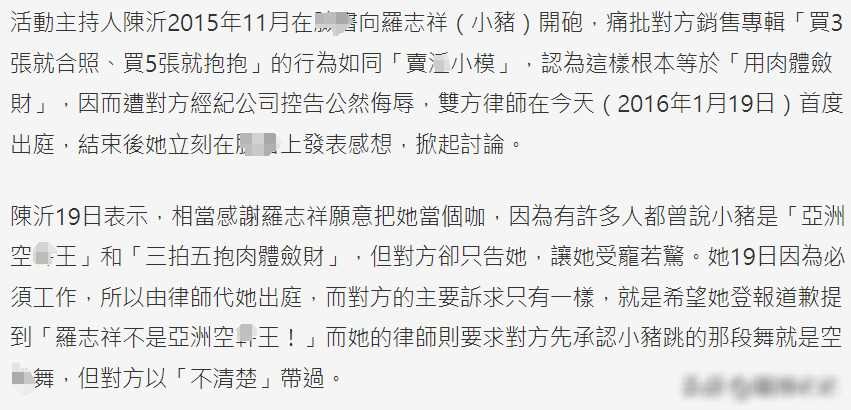 然而,就在人们以为他们的关系已经彻底僵化的时候,一件事情的发生却让人们看到了转机。那就是陈沂的出现。陈沂是一位在娱乐圈中颇有名气的主持人,她以犀利的言辞和敢说的性格而闻名。她曾经因为嘲讽罗志祥而与他结下了梁子,甚至一度闹上了法庭。虽然最终陈沂败诉并赔偿了罗志祥一笔不菲的费用,但她并没有因此而收敛自己的锋芒。