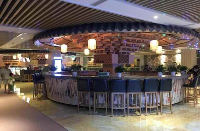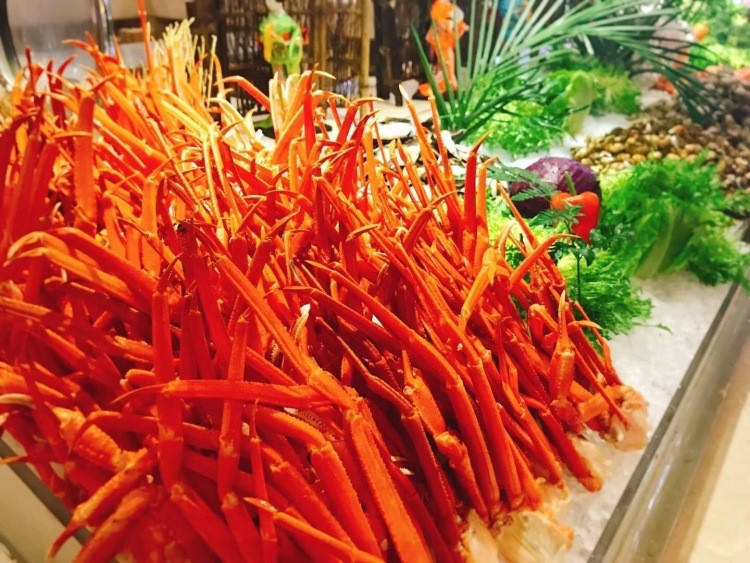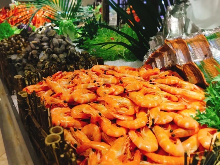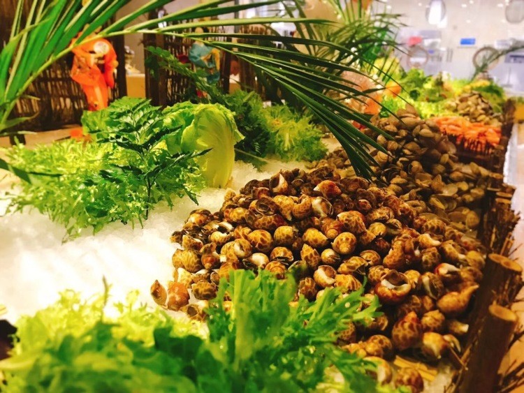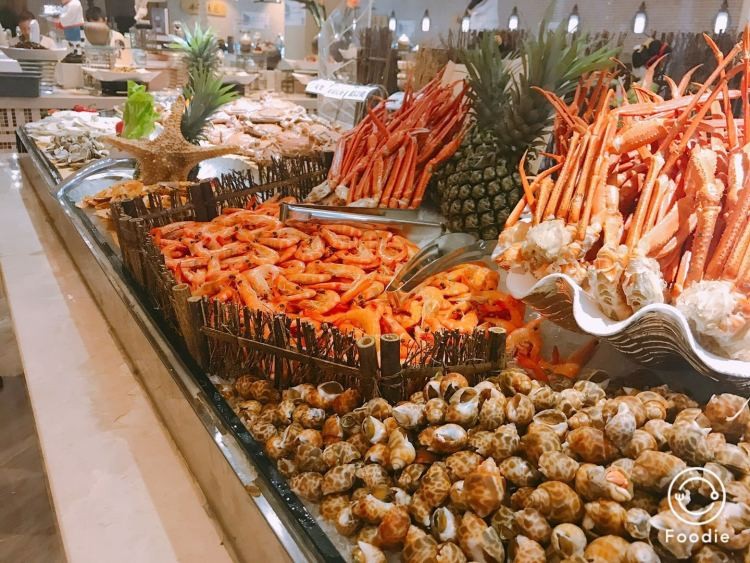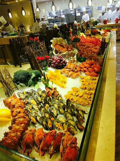 午餐、晚餐提供:中餐、西餐、日式料理、现场烤鸭、烤羊腿、铁板烧、生猛海鲜、中西冷盘、精美西点、传统小吃。