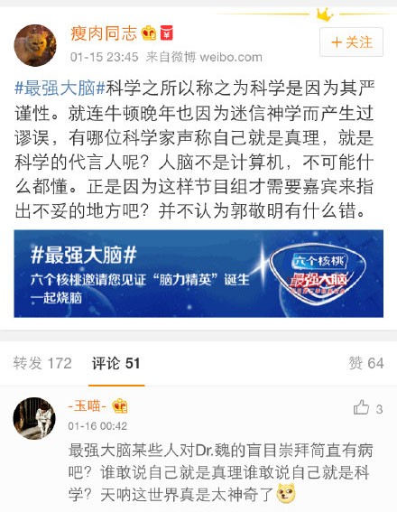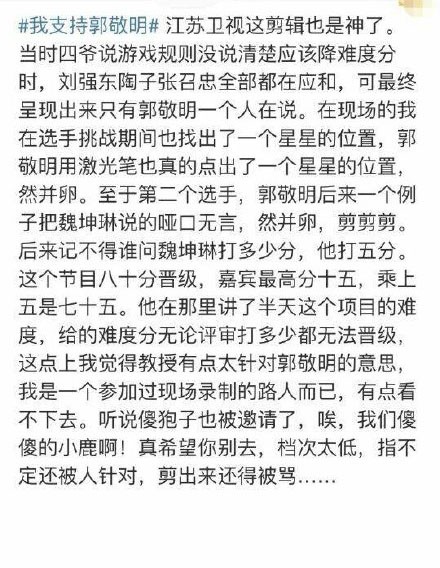 网友们也自然是围观看热闹,力挺郭敬明的网友则称:“总有人喜欢带着偏见看人,在我看来郭敬明不靠父母不走关系,靠自己有今天这样的地位和成就,无论怎样他都是值得学习和褒奖的。”
