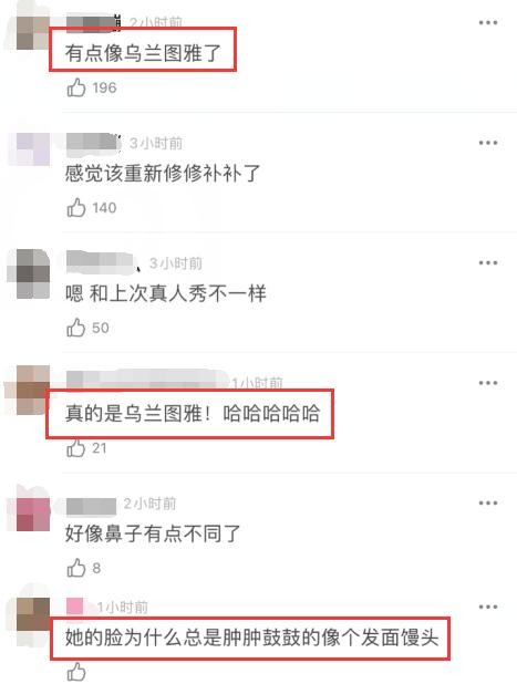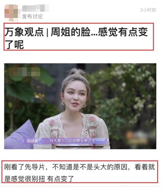 网友们在看到周扬青近照后,吐槽她的脸像发面馒头,还有人直言:“有点像乌兰图雅了。”