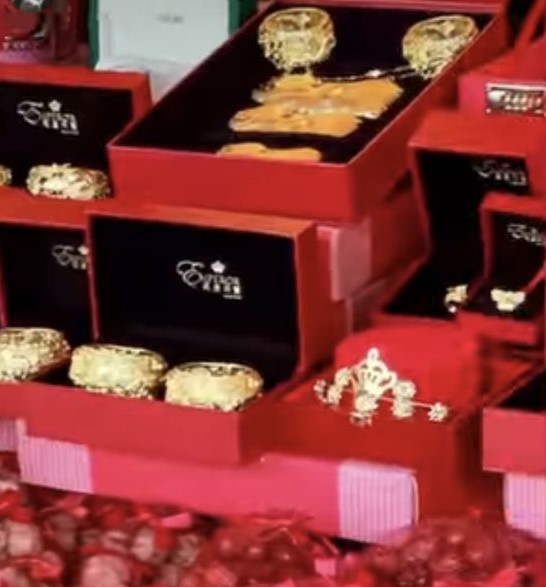何猷君百亿前女友再婚,八对龙凤镯过大礼,金饰堆积如山超奢华