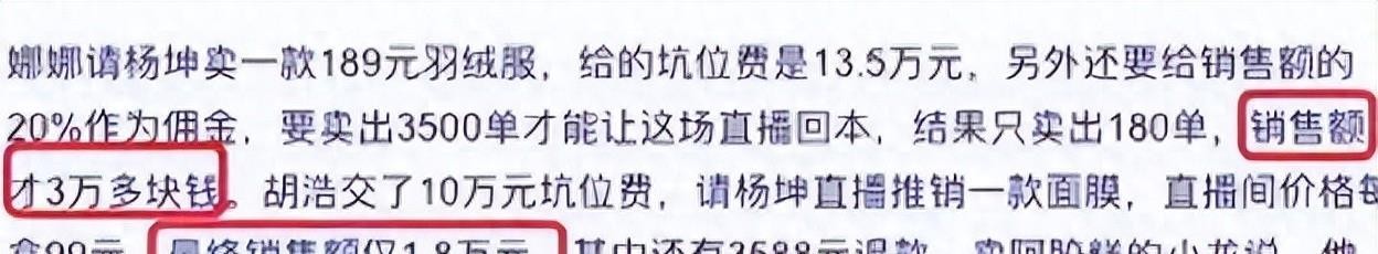最尴尬的还要数带货明星杨坤和李湘,他们的出场费可是高达六位数。然而,最终却无法完成销售任务,这让产品商不得不亲自批评杨坤和李湘,指责他们带货能力差,还拿着高额的出场费。可以看出,明星们最好还是专注于自己的本职工作,不要滥用自己的影响力谋取个人利益。