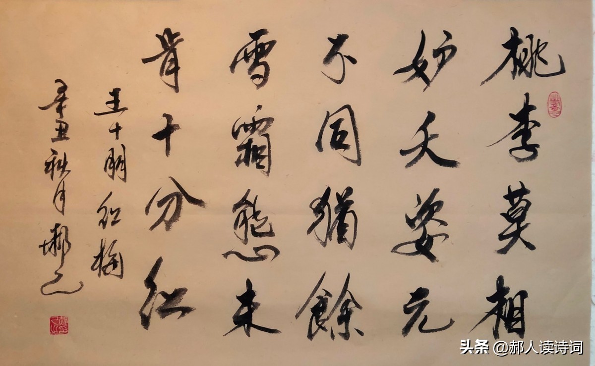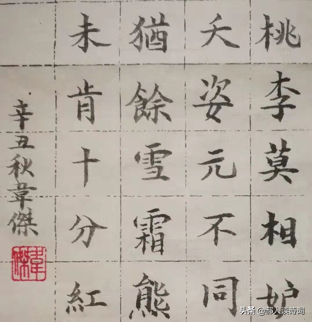 桃李莫相妒,夭姿元不同。犹余雪霜态,未肯十分红。