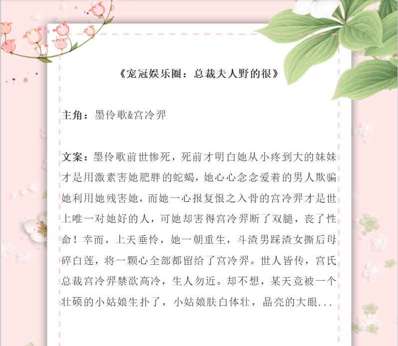 4、《宠冠娱乐圈:总裁夫人野的很》