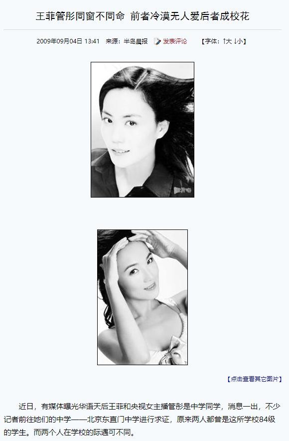 值得一提的是,管彤的同学里还有一位名人,天后王菲。