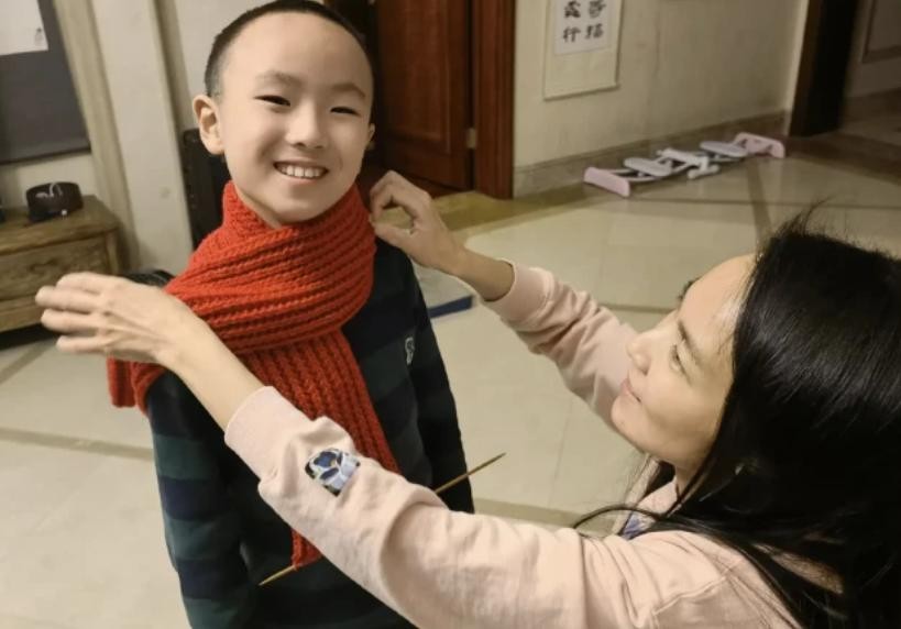 她会陪着儿子写作业,给他纠正错误,还要求儿子每天站十分钟军姿,希望他将来能够成为有责任有担当的人。