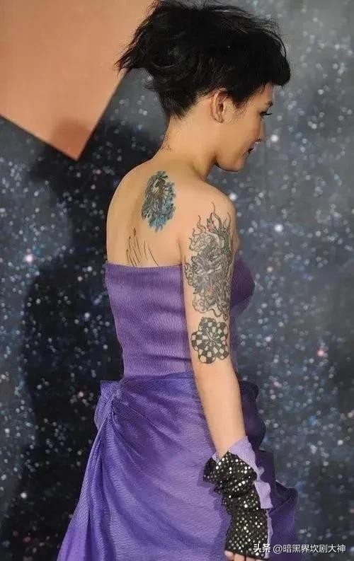 3. 伊能静:离婚后,她在美背上纹上了花朵及荆棘等图案,代表爱的痛苦,似乎要将失婚之事毫无保留地表露于人前;