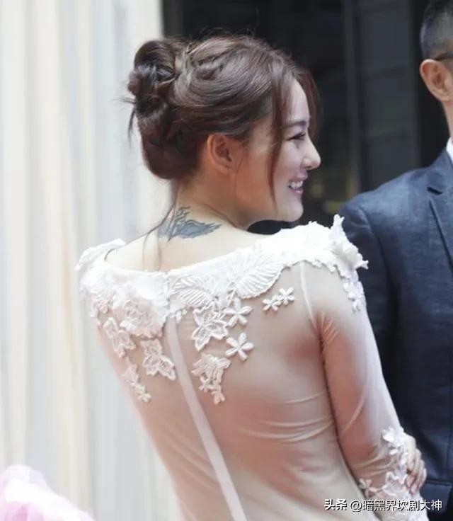7. 戚薇:整个背部有霸气的纹身;