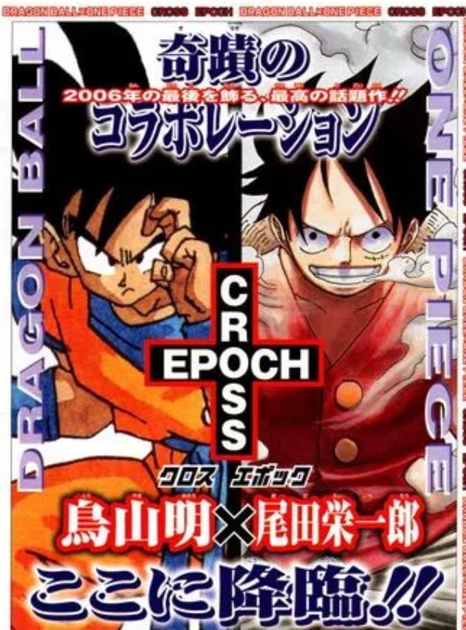 2003 年,经过编辑部的努力,尾田和鸟山明两个世代的台柱级漫画家坐在一起,出于对彼此的欣赏,他们决定合作发行一部漫画。他们联手创作了短片漫画《Cross Epoch》。故事的内容是撒旦召唤出了神龙,许愿成为了漫画世界的国王,整个漫画世界不再照常运转,进入了休息期。于是来自龙珠和海贼王的主角们相互组队一起去赴宴的故事。