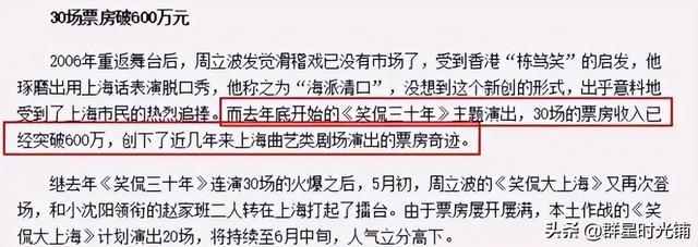 周立波迎来了事业的巅峰:在兰心大剧院开专场,电视台为他量身定做脱口秀节目,靠着三寸不烂之舌,周立波一跃成为脱口秀明星,两年赚到了1.5亿。